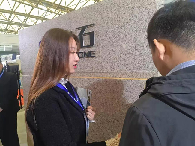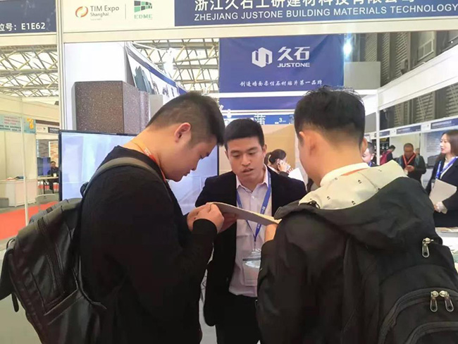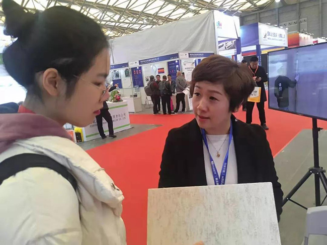 日,上海外墻裝飾材料展會在上海新國際博覽中心舉行,久石貼片石在展會上一如既往的成為展館的吸睛點,不少觀眾對貼片石都表示了濃厚的興趣和強烈的合作意向。